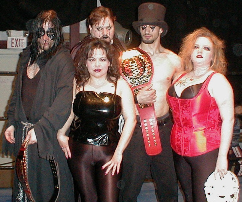 Scar and Destiny made their way to the WWC/EWC. With the shift came new outfits and a new leader. Destiny released her leadership role in Tortured Souls and, though she kept a tight reign on Scar, she allowed him to apprentice under "The Warlock" Artemus Grey (pictured to the right of Scar ---> ). They set aside the name Tortured Souls and were collectively known as the Coven along with Warlock's valet, Sorceress and Scar's tag partner, Vinnie Pain. Together Scar and Vinnie acquired the WWC Tag Titles and held them until the WWC forced the break-up of the Coven.